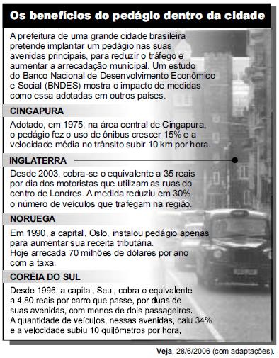 Com base nessas informações, assinale a opção correta a respeito do pedágio nas cidades mencionadas.TEMPO NA QUESTÃO