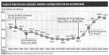O gráfico a seguir apresenta o gasto militar dos Estados Unidos, no período de 1988 a 2006.