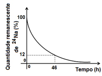 Considere o decaimento radioativo do 24Na como um processo cinético de 1ª ordem, conforme mostrado no gráfico abaixo.