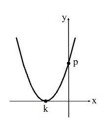 Na figura, temos o gráfico da função real definida por y = x2 + mx + (8 – m). O valor de k + p é