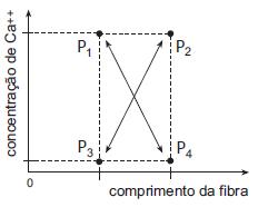 A alternativa que indica a seqüência da passagem do estado de repouso para o de contração da fibra é:TEMPO NA QUESTÃO