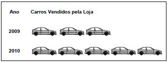Em 2010, uma loja de carros vendeu 270 carros a mais que em 2009. Abaixo, temos um gráfico ilustrando as vendas nesses dois anos.