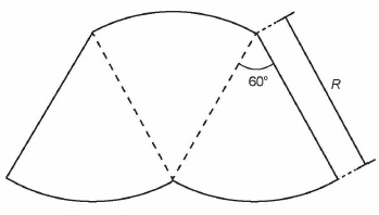 O proprietário de um parque aquático deseja construir uma piscina em suas dependências. Afigura representa a vista superior dessa piscina, que é formada por três setores circulares idênticos, com ângulo central igual a 60°. O raio R deve ser um número natural.