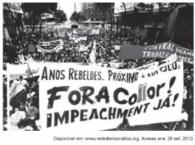 Na imagem, encontram-se referências a um momento de intensa agitação estudantil no país. Tal mobilização se explica pela