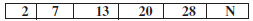 Os números dessa sequência foram obtidos segundo um determinado padrão. O valor que, de acordo com esse padrão, deve substituir o número N corresponde a: