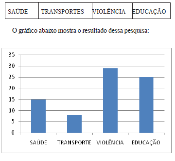 Uma pesquisa realizada com 77 moradores tinha como objetivo descobrir qual dos problemas abaixo era considerado o mais grave dentro de uma comunidade: