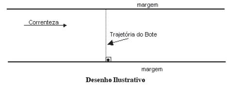 Um bote de assalto deve atravessar um rio de largura igual a 800m, numa trajetória perpendicular à sua margem, num intervalo de tempo de 1 minuto e 40 segundos, com velocidade constante. Considerando o bote como uma partícula, desprezando a resistência do ar e sendo constante