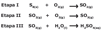 A fabricação industrial do ácido sulfúrico envolve três etapas reacionais consecutivas que estão representadas abaixo pelas equações não balanceadas: