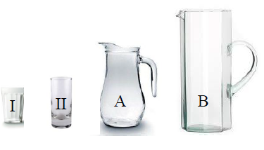 No dia 16 de outubro, haverá uma distribuição de suco durante a prova de seleção do CMRJ. O militar responsável pela distribuição possui 10 jarras do tipo B e sabe que cada jarra B corresponde a 7/3 da jarra A. Sabe-se ainda que são necessários 12 copos do tipo II, para encher a jarra A e 15 copos do tipo I, para encher a mesma jarra. Utilizando as 10 jarras do tipo B será possível servir: