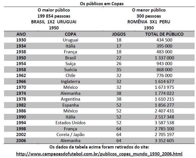 Observando a tabela acima, podemos afirmar que sobre as copas de 1930 a 2006,