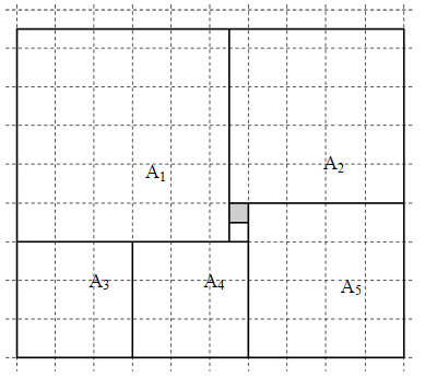 Ela pretende revestir a sala com seis tipos diferentes de pisos e cada um desses pisos formando sempre quadrados. Sabendo que o quadrado pintado na figura tem área igual a 1m2 e que para revestir cada quadrado com as dimensões deste, o piso custou 150 reais por metro quadrado.
