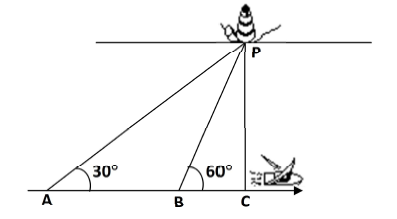 Um farol ilumina o trecho AC do oceano, por onde passava uma embarcação que navegava pela trajetória retilínea que liga os pontos A, B e C.