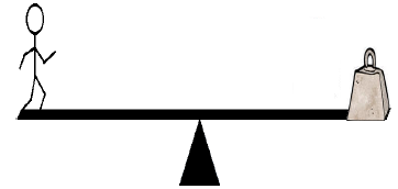 Na figura dada, inicialmente uma pessoa equilibra um bloco de 80 kg em uma tábua de 4 m apoiada no meio. Tanto a pessoa quanto o bloco estão localizados nas extremidades da tábua. Assinale a alternativa que indica de modo correto, respectivamente, o peso da pessoa e a distância a que a pessoa deve ficar do centro para manter o equilíbrio, caso o bloco seja trocado por outro de 36 kg. Considere g = 10 m/s2.