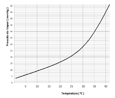 Observe o gráfico da pressão de vapor da água em função da temperatura.
