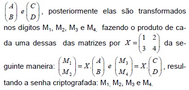 “A senha escolhida deve conter 4 dígitos, que representaremos por A B C D. Esses dígitos são armazenados em duas matrizes na forma dos vetores: