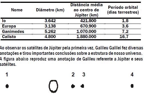 A tabela abaixo resume alguns dados importantes sobre os satélites de Júpiter.