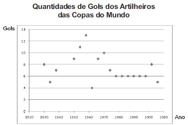 O gráfico apresenta a quantidade de gols marcados pelos artilheiros das Copas do Mundo desde a Copa de 1930 até a de 2006.