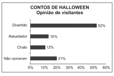 Sabendo que nenhum visitante votou mais de uma vez, a probabilidade de uma pessoa escolhida ao acaso entre as que opinaram ter assinalado que o conto “Contos de Halloween” é “Chato” é mais aproximada por