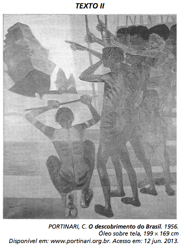 Pertencentes ao patrimônio cultural brasileiro, a carta de Pero Vaz de Caminha e a obra de Portinari retratam a chegada dos portugueses ao Brasil. Da leitura dos textos, constata-se que