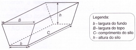 Na alimentação de gado de corte, o processo de cortar a forragem, coloca-la no solo, compacta-la e protegê-la com uma vedação denomina-se silagem. Os silos mais comuns são horizontais, cuja forma é a de um prisma reto trapezoidal, conforme mostrado na figura.