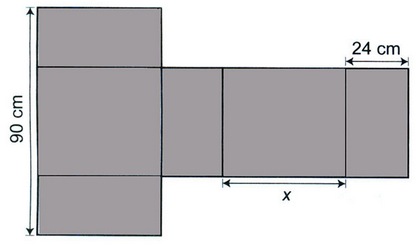 A figura mostra a planificação de uma caixa que tem a forma de um paralelepípedo retângulo. O maior valor possível para x, em centímetros, para que a caixa permaneça dentro dos padrões permitidos pela Anac