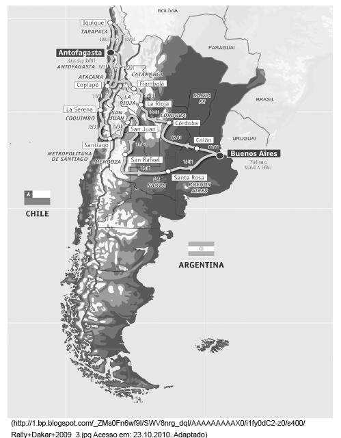 O Rally Dakar é uma das mais duras e longas competições automobilísticas do mundo. Dela participam motos, carros e caminhões. Uma prova que exige do competidor um grande preparo físico e psicológico, muita habilidade, inteligência estratégica e diversos conhecimentos técnicos, inclusive geográficos. Até 2008, as provas decorreram entre a Europa e a África. Em janeiro de 2010, no entanto, o Rally foi disputado pela segunda vez em terras sul-americanas (Argentina e Chile), e os competidores percorreram o trajeto indicado no mapa.