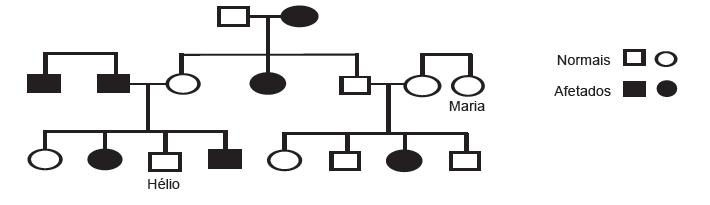 Observe o heredograma a seguir que representa indivíduos albinos (afetados) e com pigmentação normal (normais).