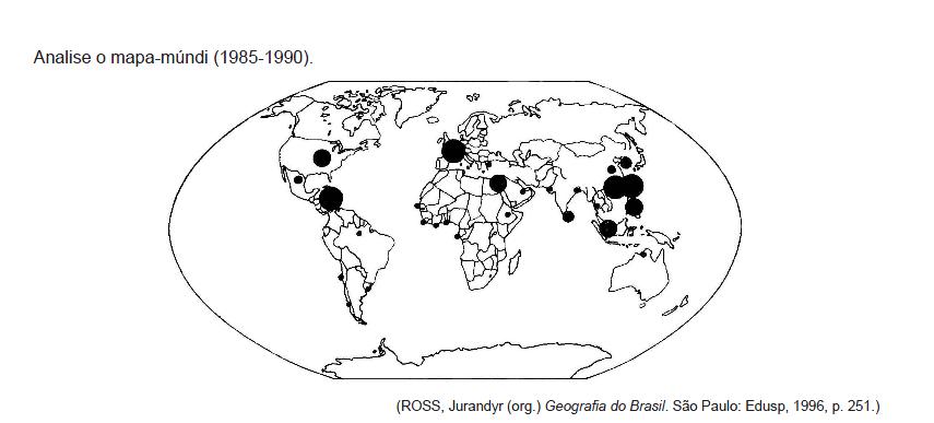 Analise o mapa-múndi (1985-1990).