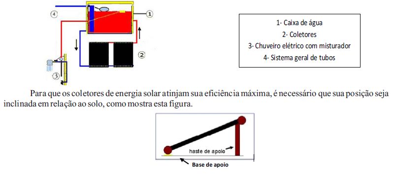 O coletor de 1 m estará apoiado sobre uma haste de 60 cm, perpendicular ao solo.