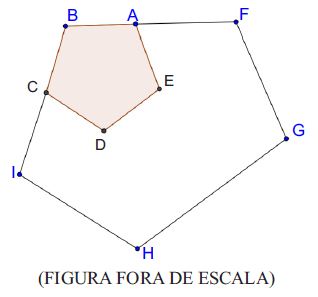 As redes sociais também representam oportunidades para vários negócios. Luísa recorreu a uma dessas redes e encontrou anúncios de terrenos. Em um deles, dois terrenos semelhantes ABCDE e BFGHI são tais que a área do maior é o quádruplo da área do menor. Sabe-se, ainda, que AE//FG; DE//GH e CD//HI.