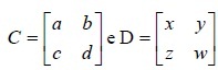 Os elementos da matriz dos coeficientes de um sistema de quatro equações lineares e quatro incógnitas (x, y, z e w) são função de quatro constantes a, b, c e d. Determine as relações entre a, b, c e d para que o referido sistema admita uma solução não trivial, sabendo que CD = − DC, onde