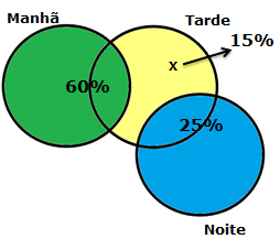 Em uma escola que funciona em três períodos, 60% dos professores lecionam de manhã, 35% lecionam à tarde e 25% lecionam à noite. Nenhum professor da escola leciona tanto no período da manhã quanto no período da noite, mas todo professor leciona em pelo menos um período. Considerando-se apenas essas informações, assinale a alternativa em que os dados apresentados sobre esses professores são necessariamente verdadeiros.