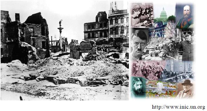 As imagens em destaque evidenciam as condições do espaço geográfico do pós 2ª Guerra Mundial em diversos países. Frente a tantos efeitos nefastos, o mundo assumia o preço da reconstrução da Europa e da Ásia, além de se preocupar em evitar que outra guerra com essas proporções pudesse ocorrer novamente. Neste sentido, surge a ONU (Organização das Nações Unidas), oficializada em 24 de outubro de 1945 em substituição à antiga Liga das Nações. Mesmo em guerra, o bloco capitalista já desenvolvia planos e projetos de restauração, como ocorreu na Conferência de Bretton Woods que reuniu 44 países aliados em Junho de 1944.