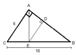 No triângulo retângulo abaixo, determine a razão entre a medida do segmento DE e a medida do segmento AC.