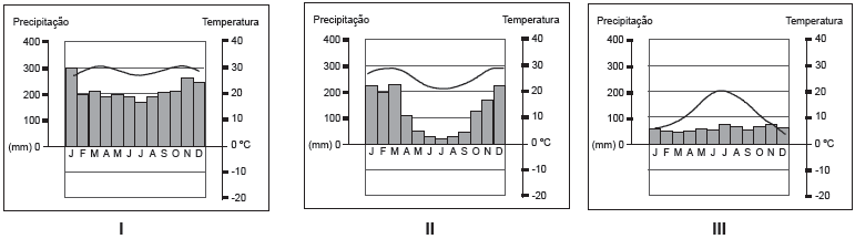 INSTRUÇÃO: Resolver a questão 18 com base nos climogramas que tratam da situação climática de três diferentes cidades.