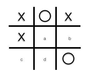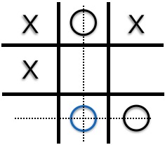 Num jogo da velha, você é o próximo a jogar (use "bola"). Marque no lugar que lhe assegure a vitória.
