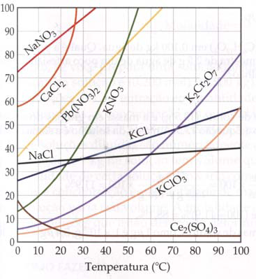Observando a figura a seguir, indique qual dos sais apresentados formou solução saturada, após a adição de 40,0 g de cada um dos sólidos, em 100 g de água, a 40ºC.