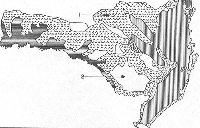 Observe o mapa que representa a vegetação nativa de Santa Catarina.