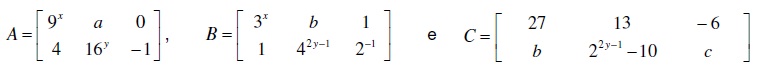 A soma dos quadrados das constantes x, y, a, b e c que satisfazem a equação matricial A - 6B = C é: