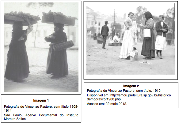 I. A Imagem 1 refere-se a mulheres livres, trabalhadoras informais que vendiam diferentes produtos, especialmente os alimentícios, nas ruas das cidades no início do século XX.