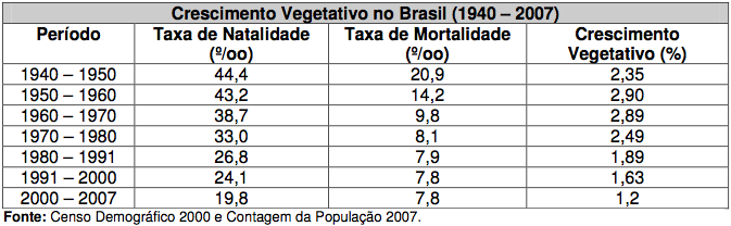 I. O crescimento vegetativo no Brasil diminuiu por causa da redução da taxa de natalidade.