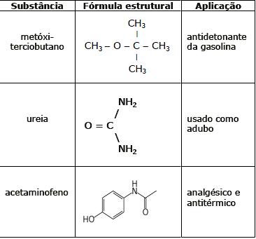 Os compostos orgânicos estão presentes na maioria dos materiais de uso diário. Analise as substâncias apresentadas na seguinte tabela e assinale a afirmação correta.