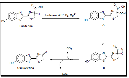 Sobre as particularidades das espécies químicas envolvidas nas etapas de conversão da luciferina em