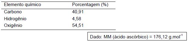 A tabela abaixo mostra os porcentuais em massa, obtidos da análise elementar do ácido ascórbico.