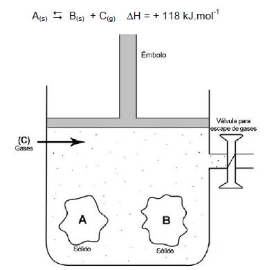 A figura abaixo descreve hipoteticamente o sistema de obtenção do composto B, o qual é obtido conforme a reação a seguir: