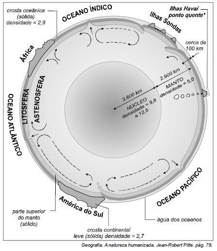 Todas as alternativas a seguir dizem respeito à estrutura interna da Terra, EXCETO: