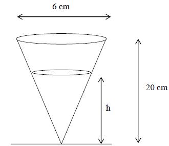 Conforme figura abaixo, um copo de papelão tem o formato de um cone de 20 cm de altura e