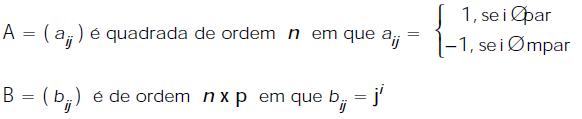 B) O elemento da quarta linha e da segunda coluna da matriz produto AB é igual a 4094. Calcule o número de linhas da matriz B.