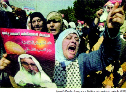 A imagem acima focaliza manifestantes palestinos protestando contra o assassinato do xeque Ahmed Yassin, destacado líder palestino. Um fator preponderante que deu origem às tensões e lutas entre palestinos e israelenses é apresentado na seguinte alternativa: