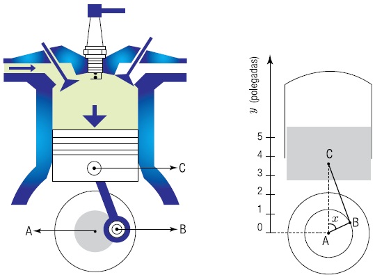 • o raio AB e a haste BC medem, respectivamente, 1 polegada e 4 polegadas;